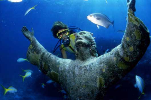 Etwa 6 Meilen Richtung Nordosten, im John Pennekamp Coral Reef State Park kann man in gut 7 Meter Tiefe die 2,60 Meter große Bronze Skulptur Christ of the Abyss bestaunen.